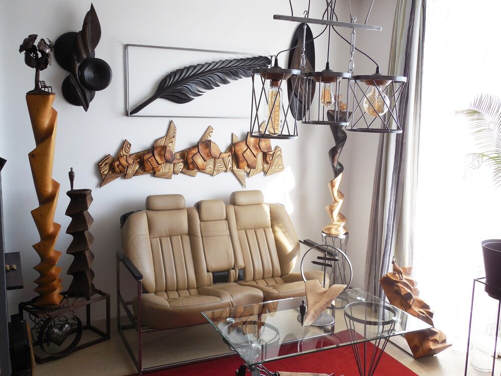 - Mein Sofa und meine Sessel bestehen aus alten Sitzen eines Lancia Libra. Ich habe dafür in meiner Werkstatt einen stabilen Metallrahmen geschweißt, Armlehnen aus Holz gefertigt, und die Konstruktion so gebaut, dass sie mehrfach verstellbar ist. Sie sind unglaublich bequem – und ein echtes Unikat.